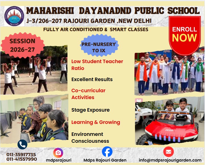 As a dominie, I strongly regard in the focal role of an educational institution to not only facilitate in the comprehensive development of a child but to also focal opportunities so that they finally emerge as winners in life and in their professional careers. All this can be accomplished at Maharishi Dayanand Public School Rajouri Garden, only because of our strenuous staff, co-operative parents and zealous learner. To boast of, Maharishi Dayanand Public School Rajouri Garden not only provides education but also builds character in students. The educational journey of Maharishi Dayanand Public School Rajouri Garden goes beyond imparting knowledge through carefully planned inter-disciplinary scholastic and co-scholastic programmes. We endeavour to equip our learners with necessary life skills and values that help them to face the challenges of life in a confident and courageous manner. In fact envisioning a global society the school curriculum is imbued a distinct international perspective..